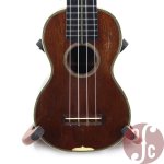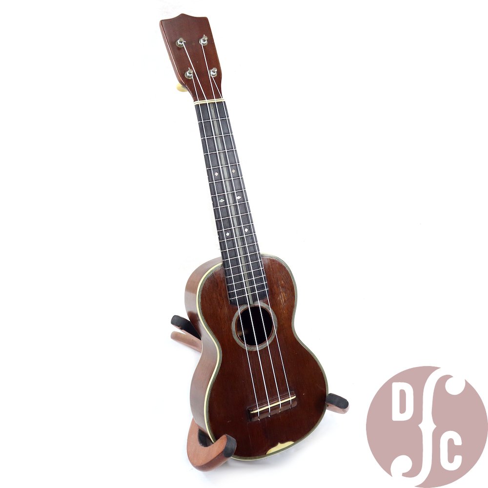 Martin's Style 3M was one of its upscale models back in 1931, and while all-mahogany sopranos may not quite be all the rage like they were a century ago, this punchy little instrument still stands apart from the rest of the pack as maybe the very finest ukulele we have in our shop at the moment. A lot of that rich, ultra-authentic tone can be chalked up to Martin's obviously legendary level of craftsmanship over the Depression years, when sales of ukes literally saved the company from bankruptcy - but plenty more come simply as a result of the instrument opening up over nearly 100 years of aging and playing in. The 3M sports some beautiful cosmetic upgrades which are very much of their time, including the distinctive center-striped fingerboard and the mustache ivoroid inlay at the bottom of the lower bout.