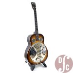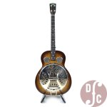This instrument arrived in our store in very good condition relative to its age. Some parts are non-original: most obviously the new, chrome planetary tuners, but also probably the tailpiece, which is substantially older but not the original resophonic cast aluminum that would've been period-correct for the guitar. The cone is an original 30s Dobro cone, and the coverplate and bridge appear to be original as well. Cosmetic condition is good overall, with playing wear consistent in line with what's seen on most instruments approaching their centennial. Finish checking is largely uniform, and the all-laminate body shows no signs of structural damage. The set up is very good, with low, comfortable action in all positions. It is currently tuned DGBE and has a bright, clear, and punchy tone all the way up and down the neck. Included in the price is a non-original hard-shell case.